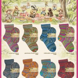 Knit up the raspberry bussi into warming socks or even the crispy kiwi. Delight in the radiant yellow tones of the banana mash or the bright blue of the sugar berry.